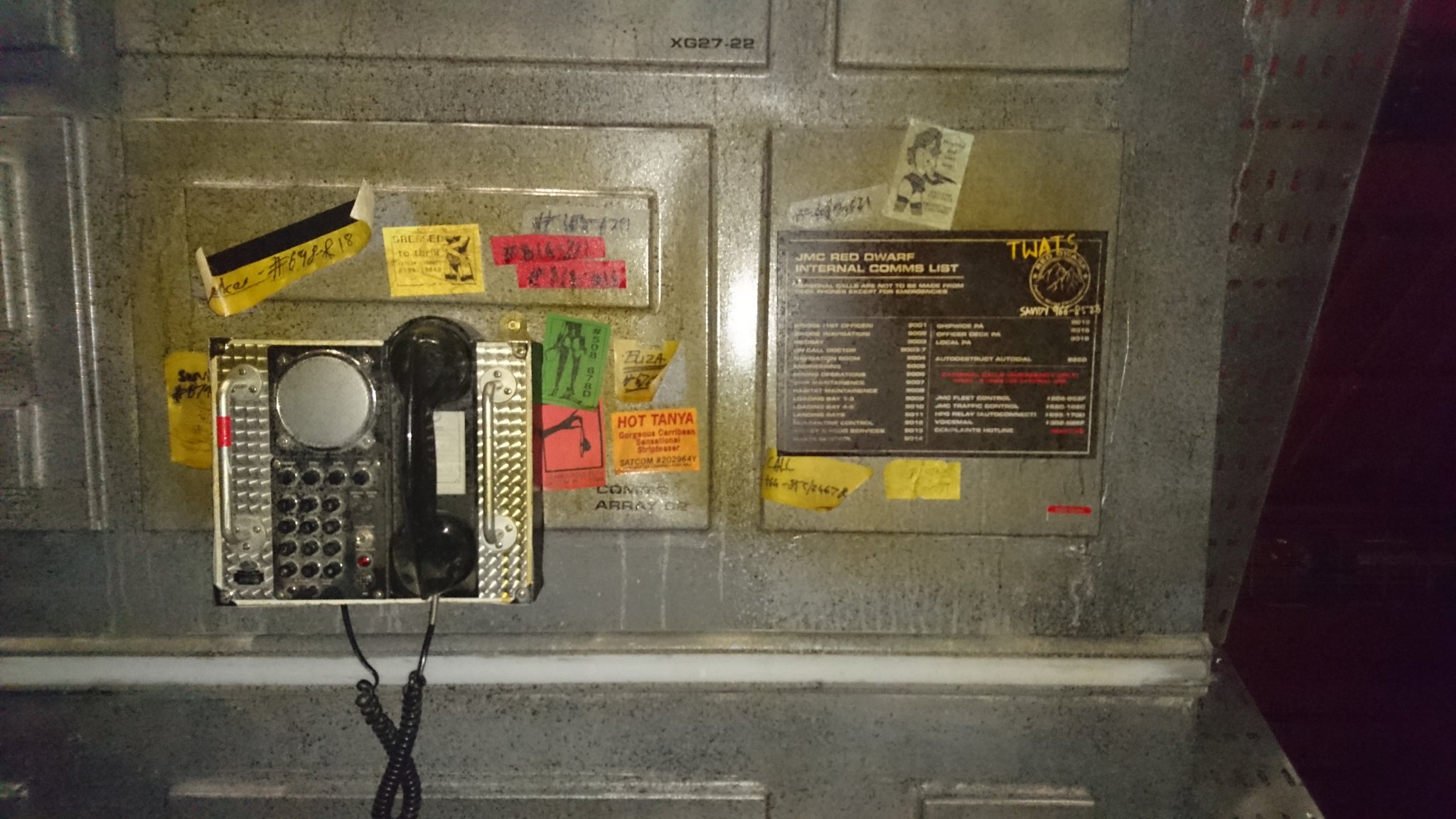 @Somebody I can make out some with Si’s photo, but yeah, still kind of blurry… @ Si Thanks for the higher res :) I’m not sure, but I think the message under the title says: “External calls are not to be made from tech (?) phones except for emergencies.” What I can make out on the right: Shipwide PA Officer Deck PA Local PA Autodestruct Autodial (WTF?? I wish the red writing wasn’t illegible) JMC Fleet Control JMC Traffic Control *** Relay Autoconnect Voicemail Complaints Hotline