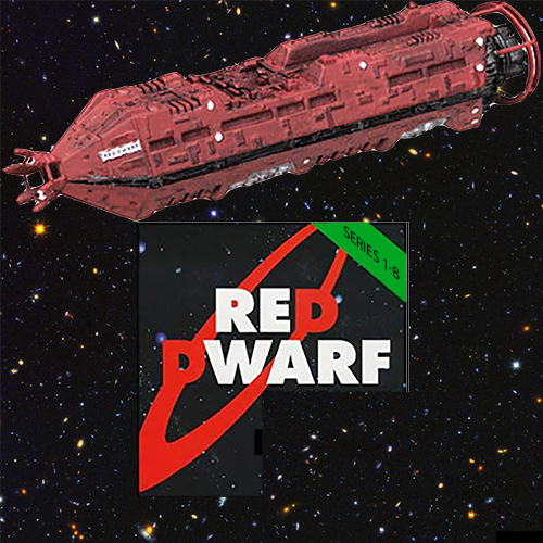 Yeah I’d like a nice original ship shot personally. If you’re trying to sum up Red Dwarf in one picture, you want something that’s not tied to one episode so the ship is it. The cast change costume and look series to series for a cast picture. A painting or picture of the ship in space taking up the top half, and the bottom with Red Dwarf I-VIII in microgramma underneath. The Futura logo too.
