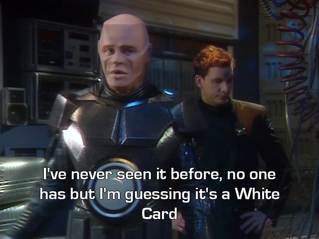 Top Row: Who spontaneously combusted in Confidence and Paranoia?, Where does Rimmer want to go, career wise?, Not sure about QFH, Who created Kryten?, Something about Kill Crazy I’d imagine.