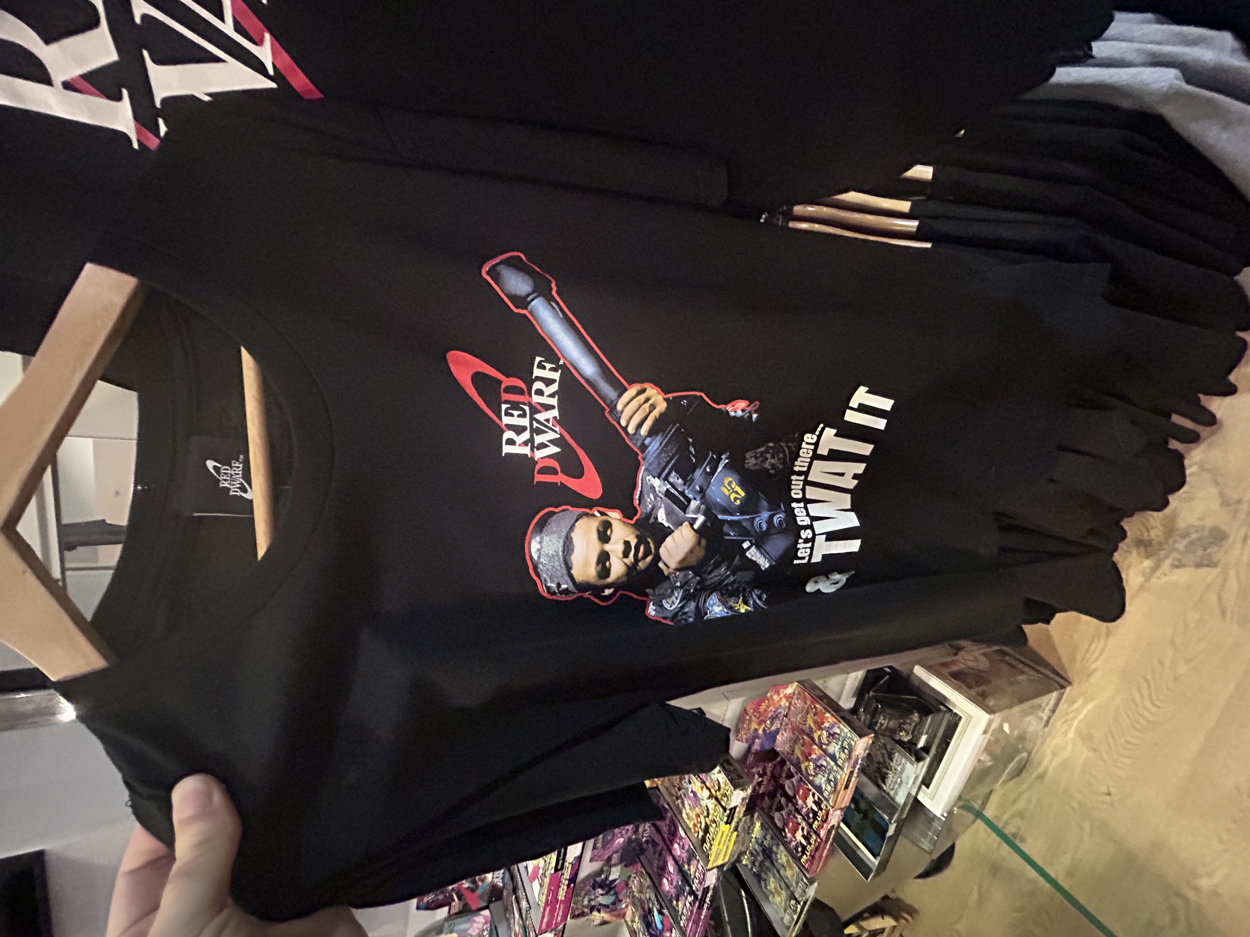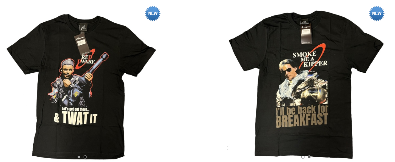 Home › Forums › Ganymede & Titan Forum › New t-shirts?!?? Search for: This topic has 10 replies, 9 voices, and was last updated 32 minutes ago by Ridley. Scroll to bottom Creator Topic December 1, 2025 at 12:22 am #314157 thomasaevansParticipant My reaction to seeing these today at The Television and Movie Store in Cardiff today must of been priceless. Officially licensed! The start of more merchandise I hope. Has anyone else seen these about? Creator Topic Viewing 10 replies - 1 through 10 (of 10 total) Author Replies December 1, 2025 at 1:30 am #314159 MoonlightParticipant It would be odd for them to be using that variant of the logo in new merch when it hasn’t been the primary logo for a decade at this point. But then again, they encoded nine episodes in the wrong framerate on the first Blu-ray set. December 1, 2025 at 3:02 am #314160 clemParticipant They’ve got the Twat It t-shirt and a Smoke Me a Kipper one here: https://www.scificollectorshop.co.uk/search/for/Red+dwarf/ Seems legit. December 1, 2025 at 4:45 am #314162 MoonlightParticipant I guess it makes sense if these are reprints of old shirts. December 1, 2025 at 6:55 am #314164 RidleyParticipant Using an ampersand in that way should be illegal. December 1, 2025 at 9:10 am #314168 Ian SymesKeymaster Just like you remember them, except worse. December 1, 2025 at 9:28 am #314169 WarbodogParticipant At least the new one puts the right emphasis on BREAKFAST December 1, 2025 at 10:33 am #314170 Flap JackParticipant Clearly there needs to be a service where you can order custom tees based on cherry picked moments from the Smega-Drive. Any filthy casual knows “Better Smeg Than Dead (sic)”, but only a hardcore fan would stroll into the club wearing one of these on their chest: December 1, 2025 at 11:21 am #314173 JenuallParticipant These must have been a fairly recent release then because I was in that store only a few weeks ago and don’t remember spotting them! December 1, 2025 at 11:23 am #314174 DaveParticipant Just like you remember them, except worse. Third one spotted. December 1, 2025 at 11:33 am #314176 RidleyParticipant You ampersand a twart. There we go. Author Replies Viewing 10 replies - 1 through 10 (of 10 total) Scroll to top • Scroll to Recent Forum Posts You must be logged in to reply to this topic. Log In Username: Password: Keep me signed in Log In