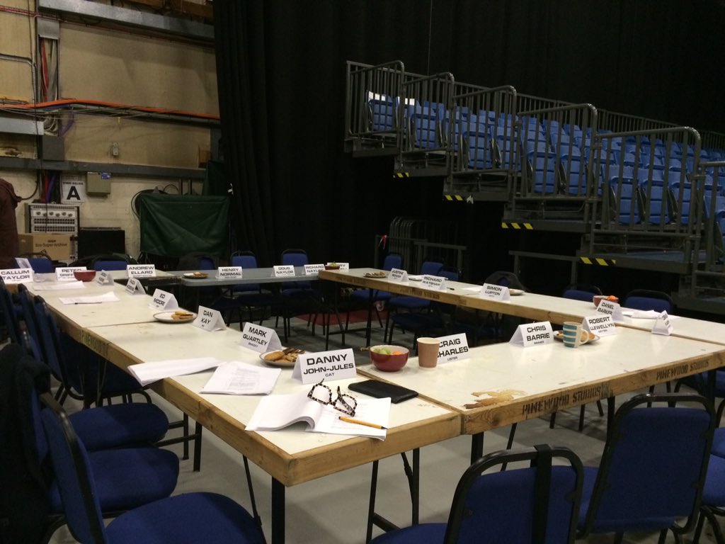 Sets and ‘Bugs and Acting Roles News Posted by Ian Symes on 11th November 2015, 18:50 Welcome to the latest installment of “Embedding A Load Of Tweets And Over-Analysing The Contents”, which looks set to become a long-running series indeed. As production on Red Dwarf XI steams ahead prior to Friday’s audience recording, studio-based rehearsals and pre-records are now taking place. Several members of the cast and crew are documenting every little step of the process on Twitter, meaning we have access to tantalising behind-the-scenes secrets, such as the time Craig Charles spilled some coffee during a readthrough. Wet bottoms all round! Just finished first read for @UKTV head honchos. Note where audience sit and coffee stain is. pic.twitter.com/PGp8oszv4D — Danny John-Jules (@DannyJohnJules) November 10, 2015 Admittedly, this doesn’t seem like much. But if you open up the full-sized picture, there are a lot of interesting names to read… Continue reading →